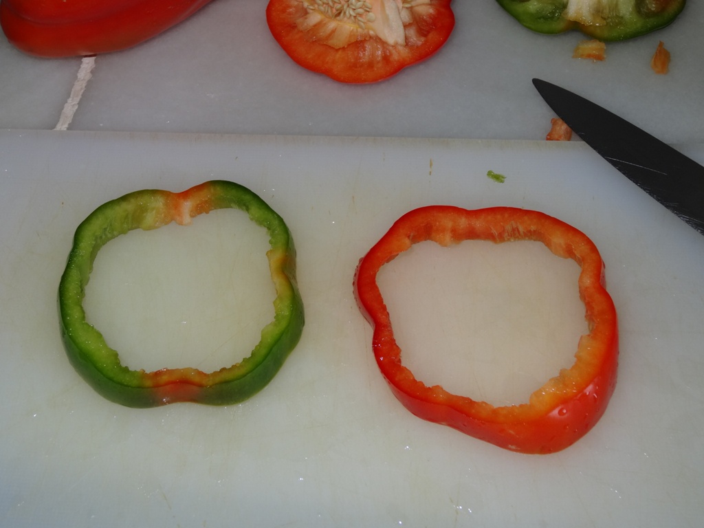 una vez que haya ablandado un poco, le damos la vuelta a los aros de pimiento y